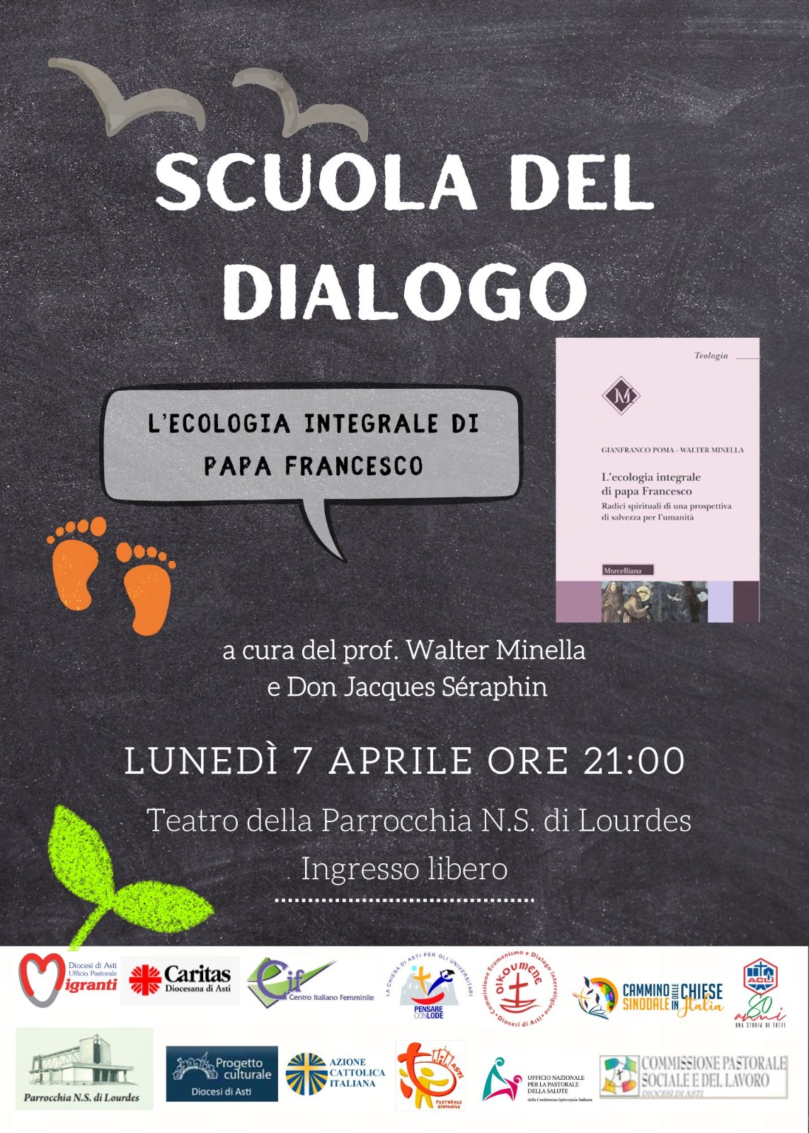 Il nuovo appuntamento di questo cammino avrà protagonisti, lunedì 7 aprile, alle 21, nel Teatro della parrocchia N.S. di Lourdes, il prof. Walter Minella docente di storia e filosofia che recentemente, insieme a Gianfranco Poma, ha pubblicato per Morcelliana “L’ecologia integrale di papa Francesco. Radici spirituali di una prospettiva di salvezza per l’umanità” e don Jacques Séraphin neo laureato in Teologia morale sociale (dottrina sociale della chiesa) presso Facoltà Teologica dell’Italia Settentrionale di Torino con la tesi “Educare all’ecologia integrale nella Repubblica Democratica del Congo. Per un’etica di solidarietà intergenerazionale”.