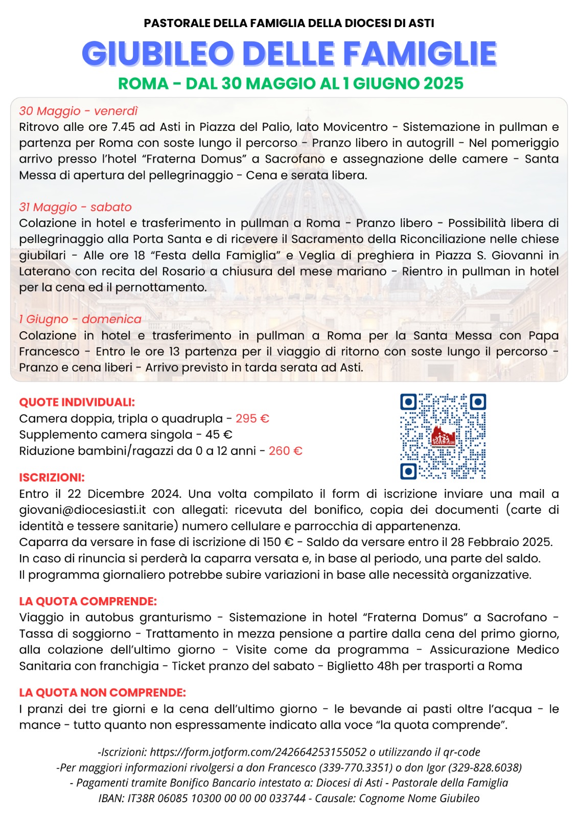 Si partirà da Asti il 2 aprile per camminare insieme come pellegrini di speranza per visitare le basiliche Papali, attraversare la Porta Santa e vivere un’intensa esperienza di Chiesa.