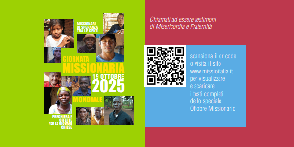 Domenica 19 ottobre invitiamo tutte le comunità della Diocesi a vivere, ciascuna nel proprio territorio, la gioia e la fraternità della Giornata Missionaria Mondiale. Al termine del suo messaggio per la Giornata Missionaria Mondiale, papa Francesco rinnova l’invito a valorizzare la Giornata Missionaria Mondiale nel suo carattere universale: «Insisto ancora … sul servizio delle Pontificie Opere Missionarie nel promuovere la responsabilità missionaria dei battezzati e sostenere le nuove Chiese particolari» (Messaggio del Santo Padre Francesco per la Giornata Missionaria Mondiale 2025). Ricordiamo ciò che ci dice il Decreto “Ad Gentes” del Concilio Vaticano II sull’attività missionaria della Chiesa: «A queste opere infatti deve essere giustamente riservato il primo posto, perché costituiscono altrettanti mezzi sia per infondere nei cattolici, fin dalla più tenera età, uno spirito veramente universale e missionario, sia per favorire una adeguata raccolta di sussidi a vantaggio di tutte le missioni e secondo le necessità di ciascuna» (Concilio Vaticano II, Decreto Ad gentes sull’attività missionaria della Chiesa, 38).
