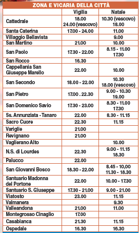 Pubblichiamo gli orari completi delle messe di Natale (vigilia, notte, aurora e giorno) delle parrocchie in città e nei paesi della Diocesi.