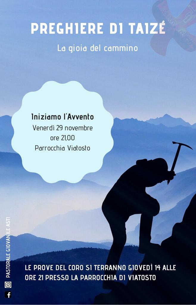 In occasione dell’inizio dell’Avvento, il 29 novembre si terrà il primo incontro nella chiesa di Viatosto, alle ore 21. A guidare la serata saranno i giovani che hanno trascorso la settimana estiva nella comunità e il nostro vescovo Marco che li ha accompagnati durante questa esperienza. In particolare, alcuni di loro, ci porteranno la loro testimonianza e le loro riflessioni, divise nei tre momenti della giornata scanditi dalla preghiera del mattino, quella prima di pranzo, e quella della sera.