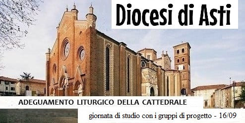 Venerdì 16 settembre, nell’ambito dell’iter del concorso per l’adeguamento liturgico della Cattedrale di Asti, si terrà una giornata di formazione esclusivamente dedicata ai gruppi selezionati nella prima fase dei lavori della giuria, svoltisi lo scorso mese di luglio. Saranno presenti ad Asti, assieme ai componenti della giuria, il direttore dell’Ufficio Nazionale per i Beni Culturali e l’Edilizia di Culto, don Luca Franceschini, e il direttore dell’Ufficio Liturgico Nazionale, don Alberto Giardina, in quanto il bando è promosso dalla Conferenza Episcopale italiana e, come ormai dovrebbe essere noto, la diocesi di Asti è risultata tra le vincitrici.