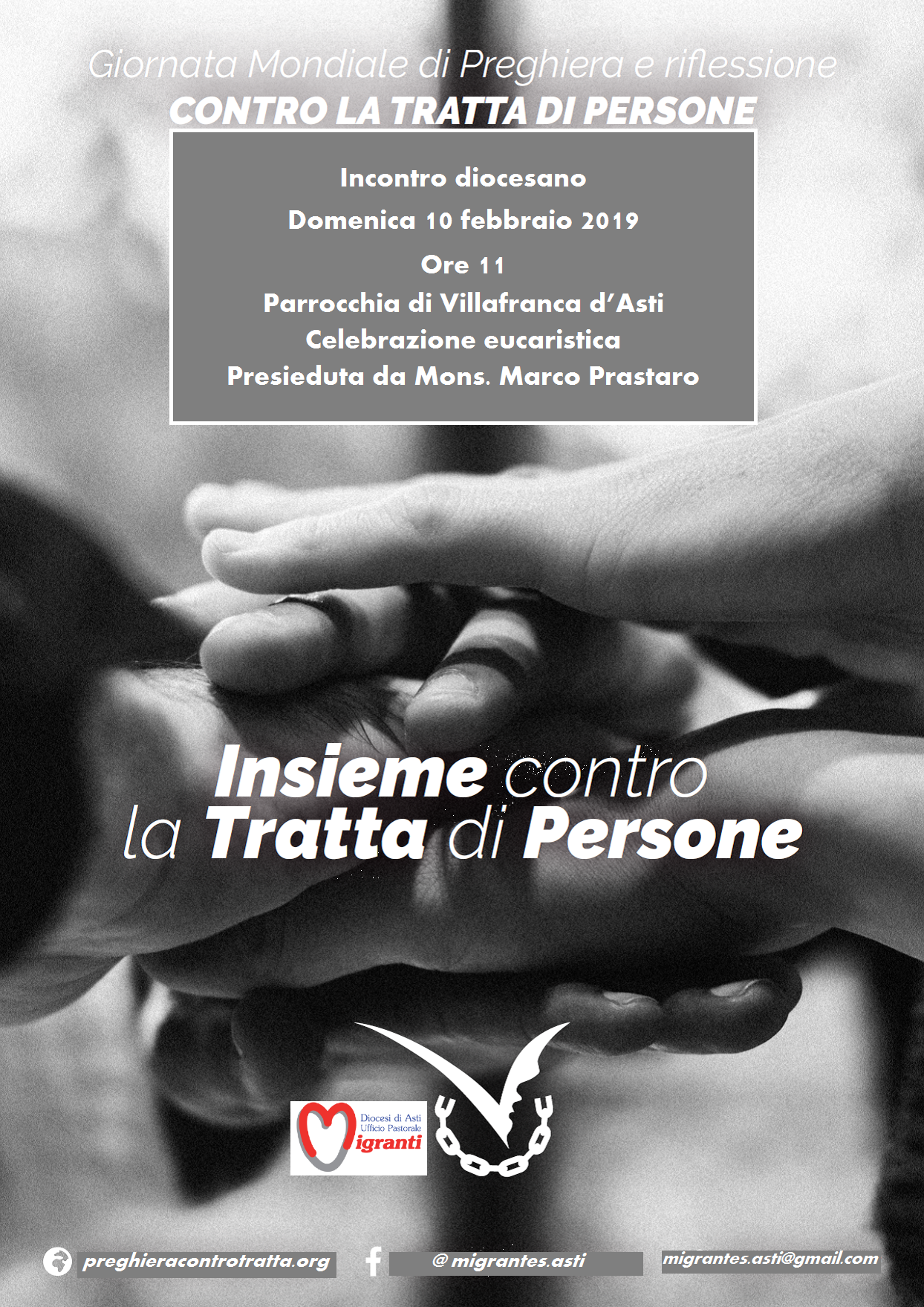 4 Febbraio 2019 amartinetto Celebrazione eucaristica presieduta da Mons. Marco Prastaro nella Parrocchia di Villafranca d’Asti in occasione della Giornata Mondiale di Preghiera e riflessione contro la tratta di persone domenica 10 Febbraio Descrizione: 1 Inizio: 10/02/2019 11:00 Fine: 10/02/2019 12:00 Categorie: Agenda pastorale Allegati: LOCANDINA 10 FEBBRAIO (1)