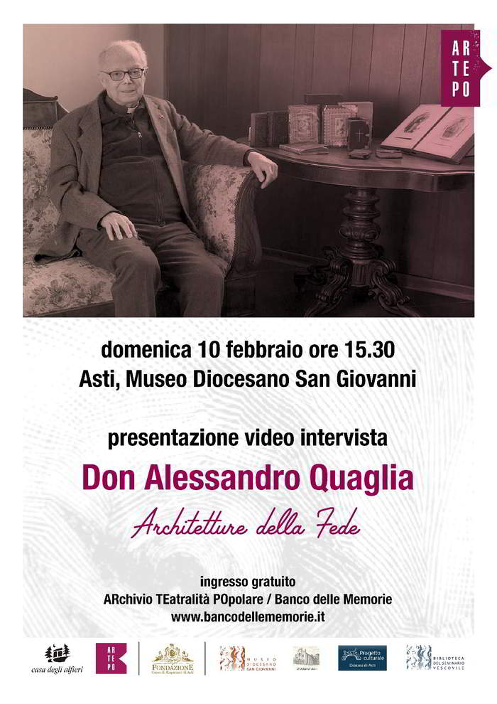 3 Febbraio 2019 amartinetto Presentazione della video intervista “Don Alessandro Quaglia Architetture della Fede” presso il Museo Diocesano San Giovanni di Asti domenica 10 Febbraio Descrizione: 1 Inizio: 10/02/2019 15:30 Fine: 10/02/2019 16:30 Categorie: Agenda pastorale Allegati: Locandina Videointervista don Quaglia
